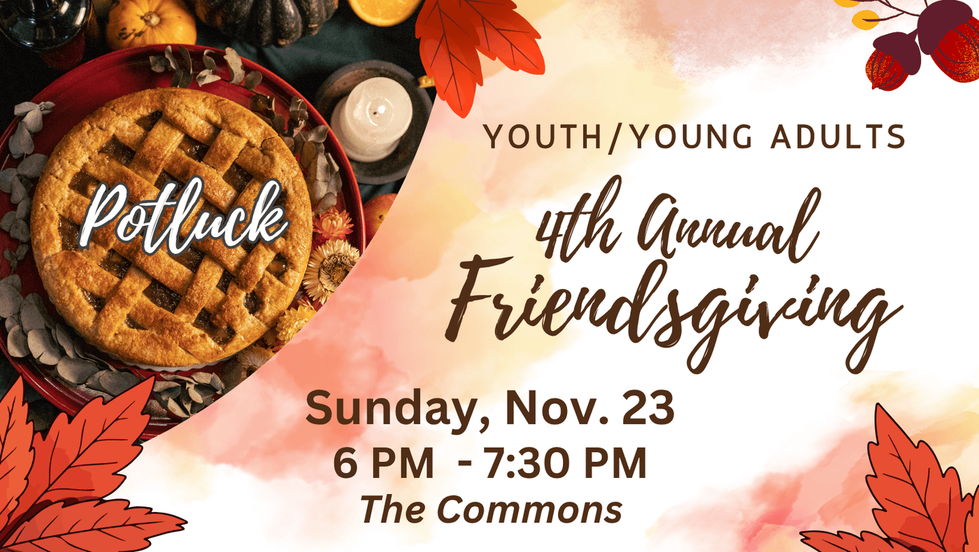 We’re gathering as a church family to celebrate God’s goodness and the gift of community at our Potluck Gratitude Dinner on Sunday, Nov. 9.