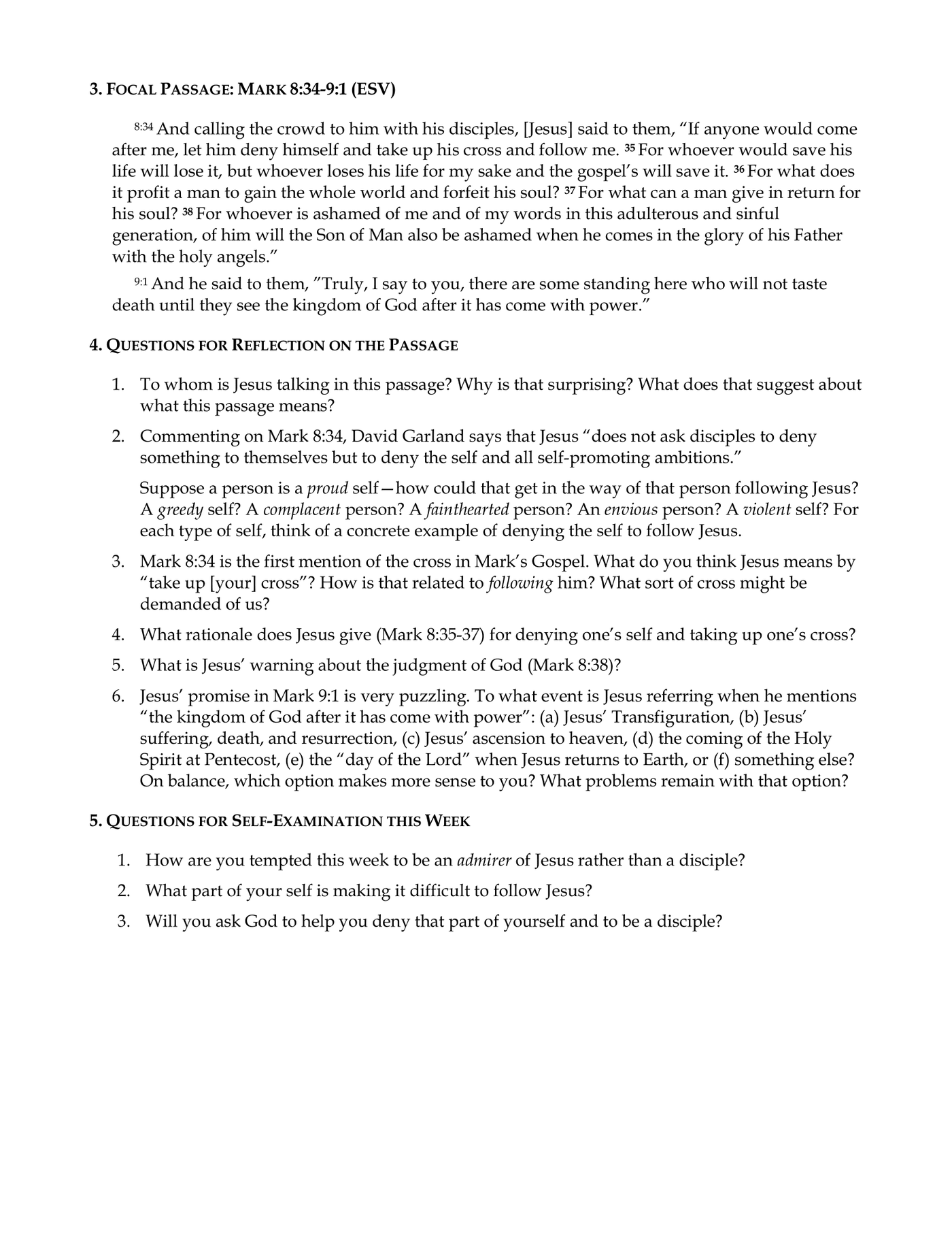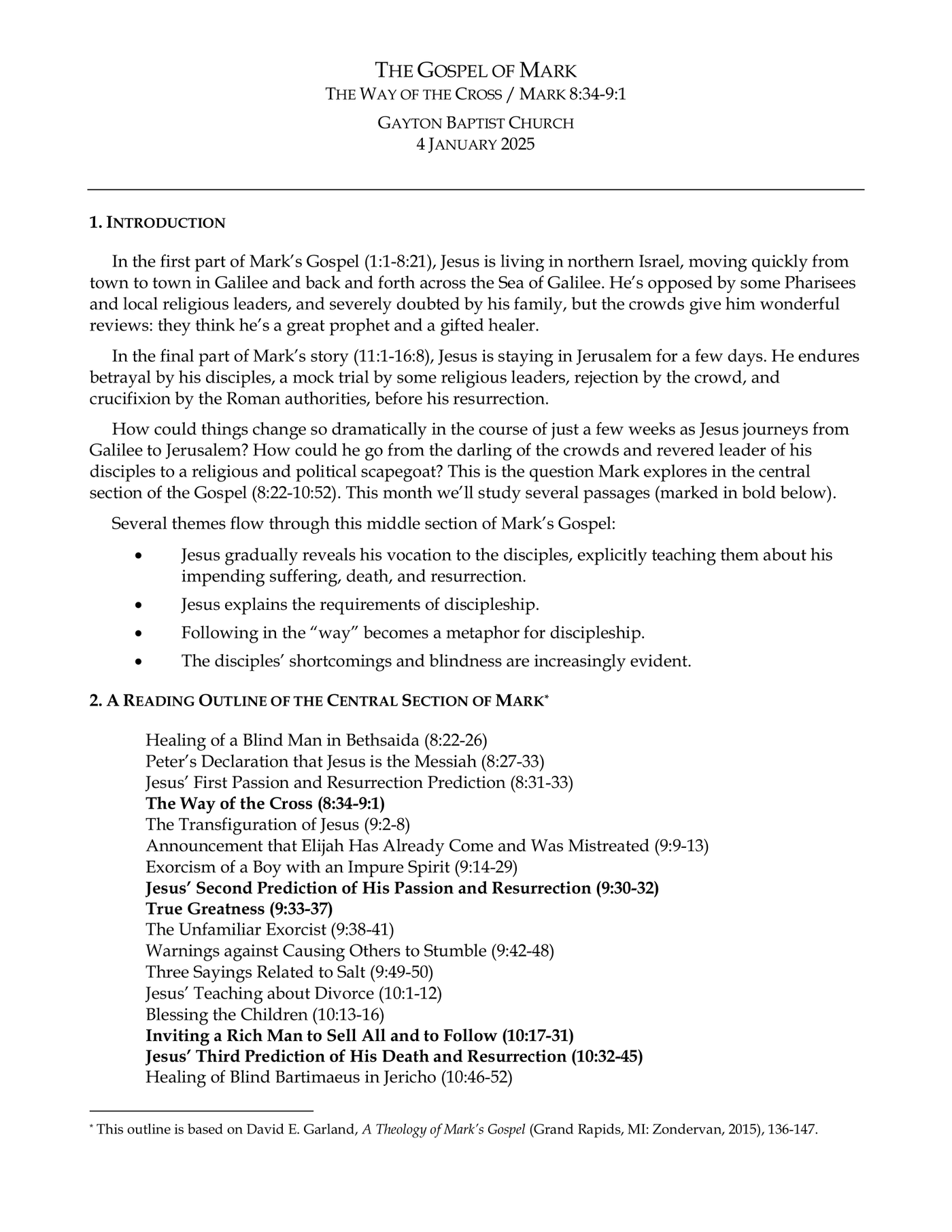 Lesson 1: The way of the cross (Mark 8:34-9.1)