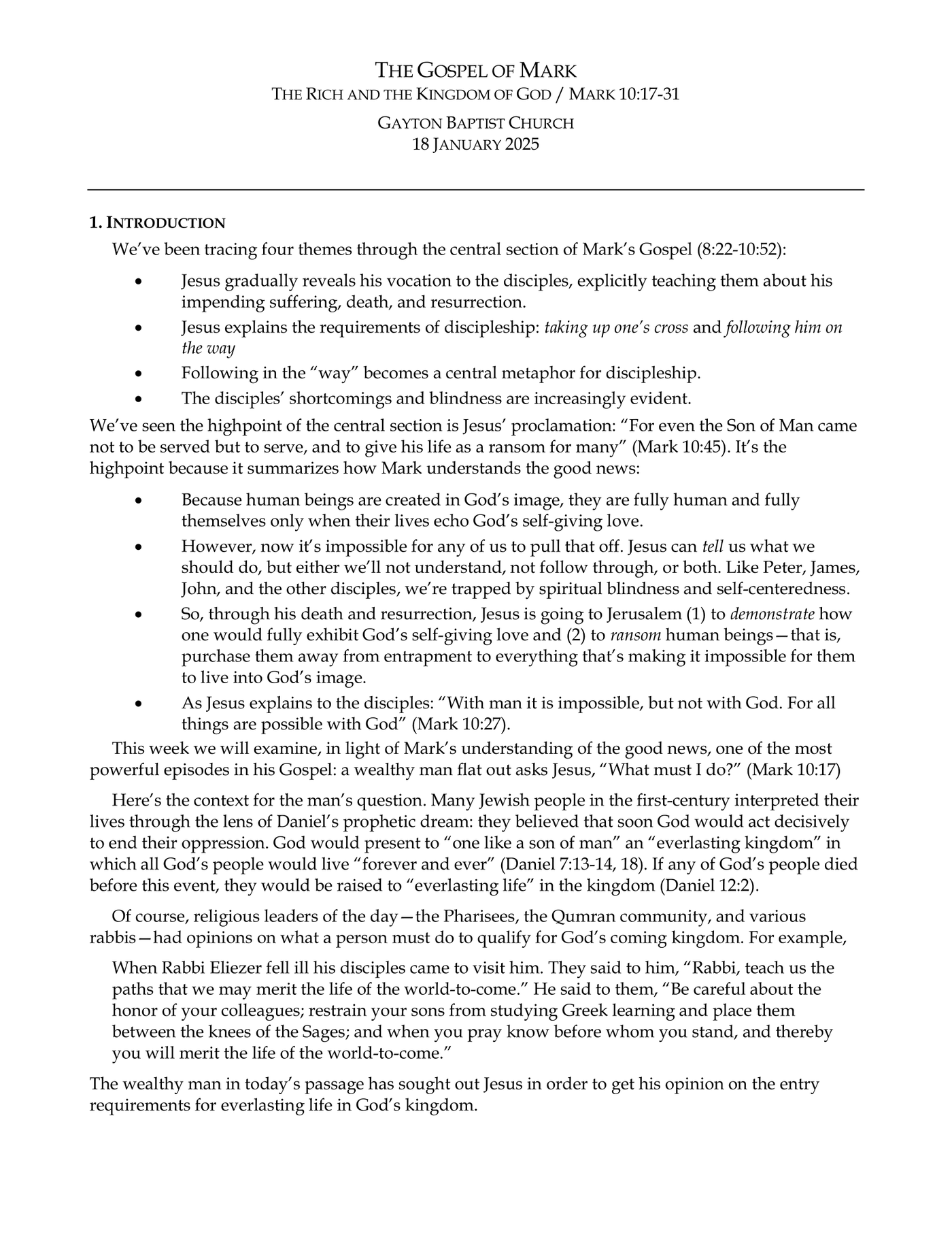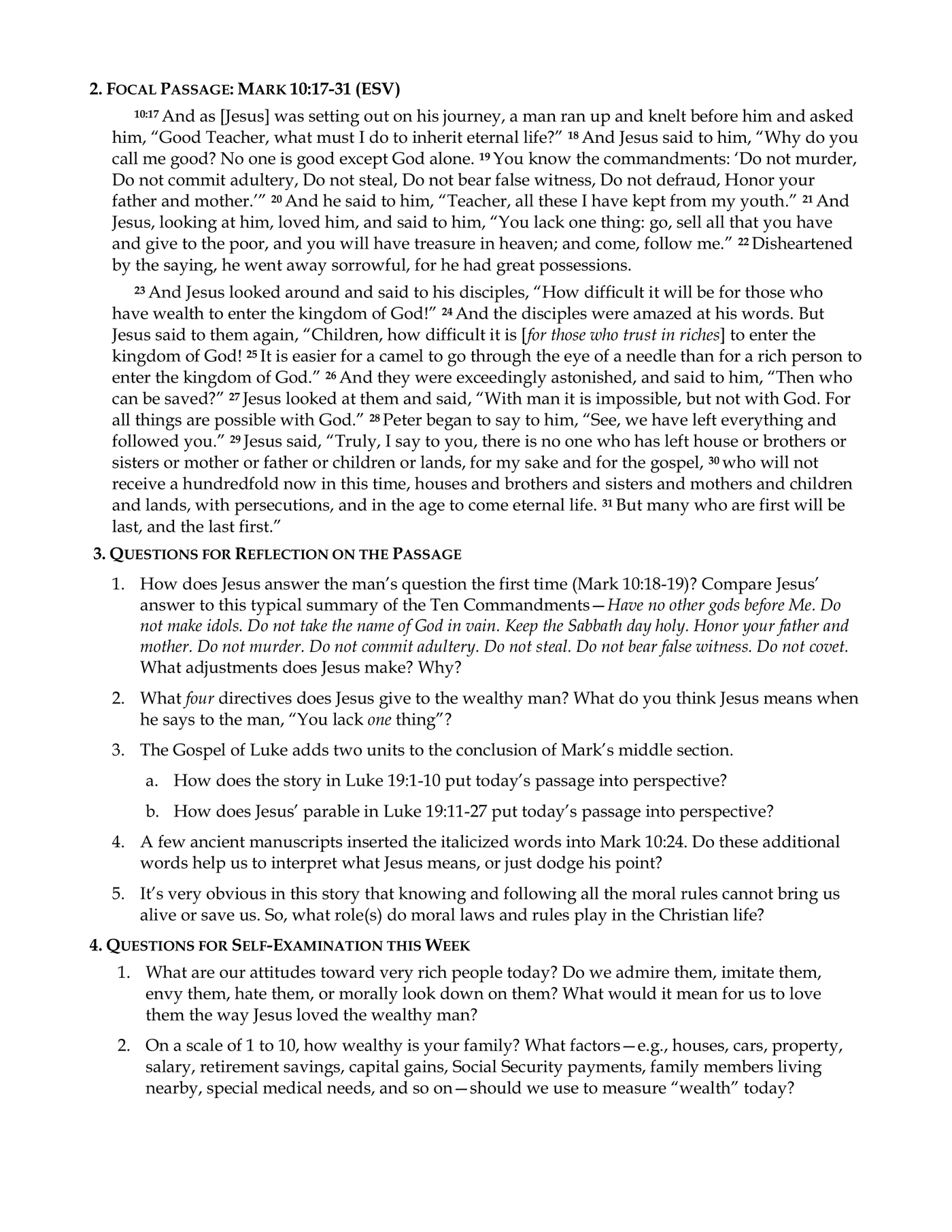 Lesson 3: The rich and the kingdom of god (mark 10:17-31)