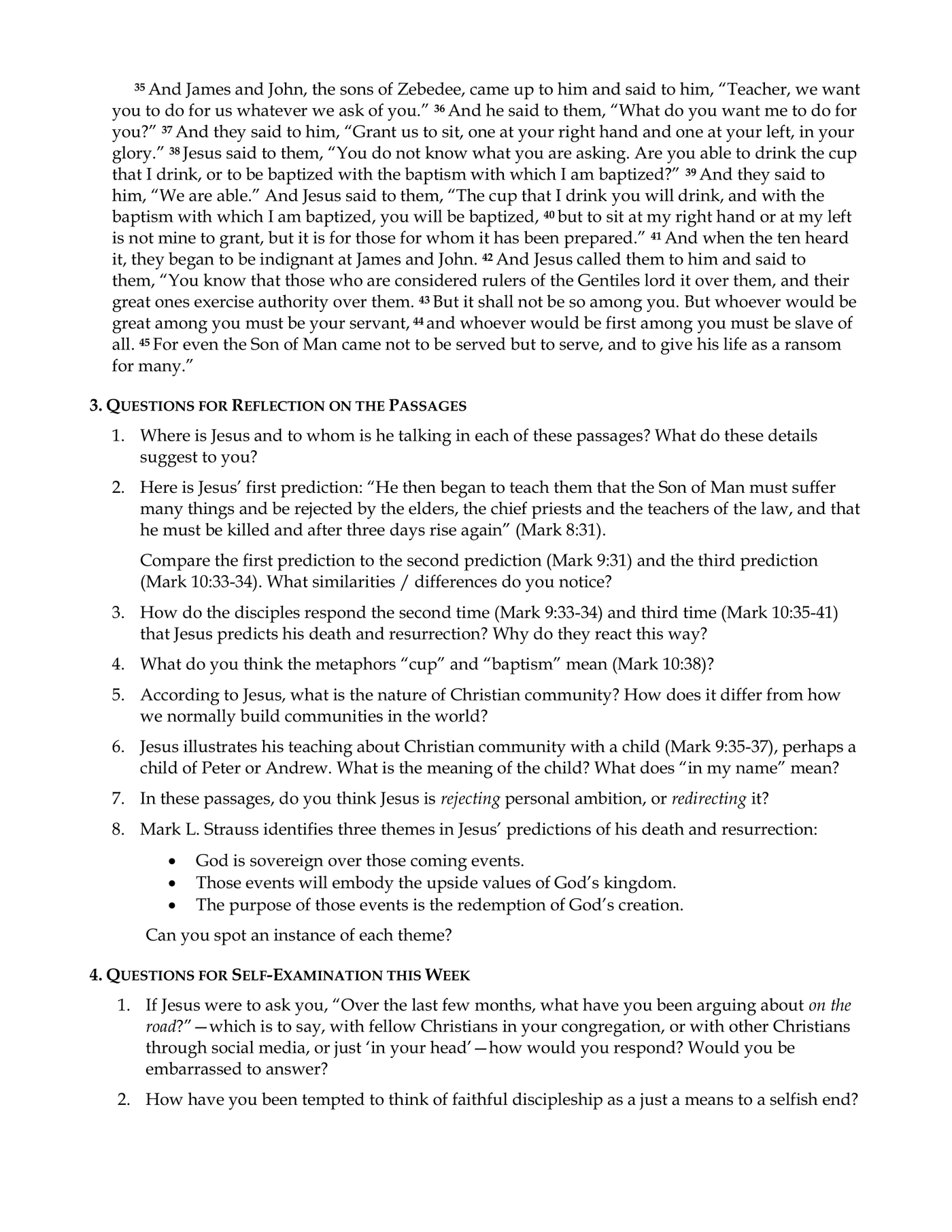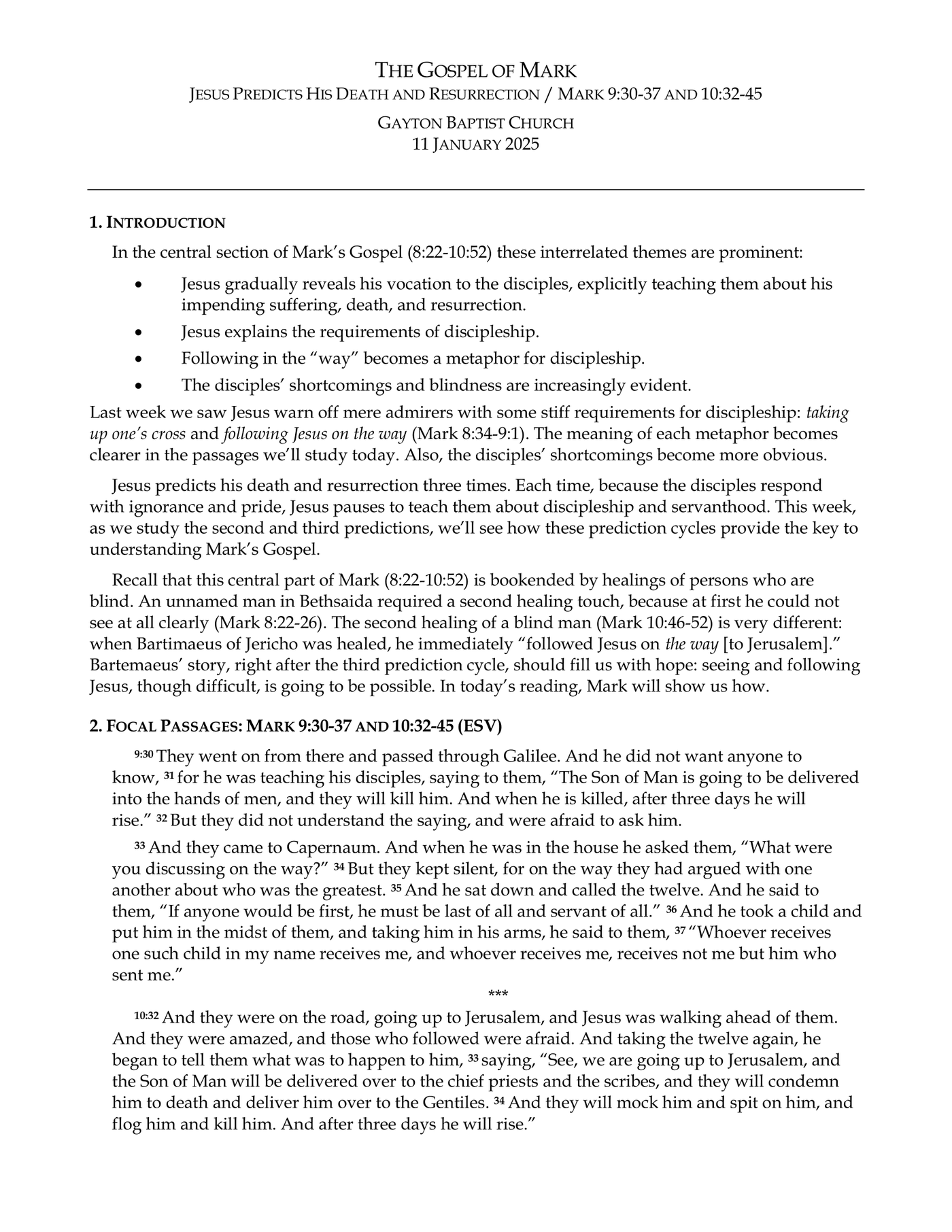 Lesson 2: Jesus Predicts his death and resurrection/mark 9:30-37 & 10:32-45