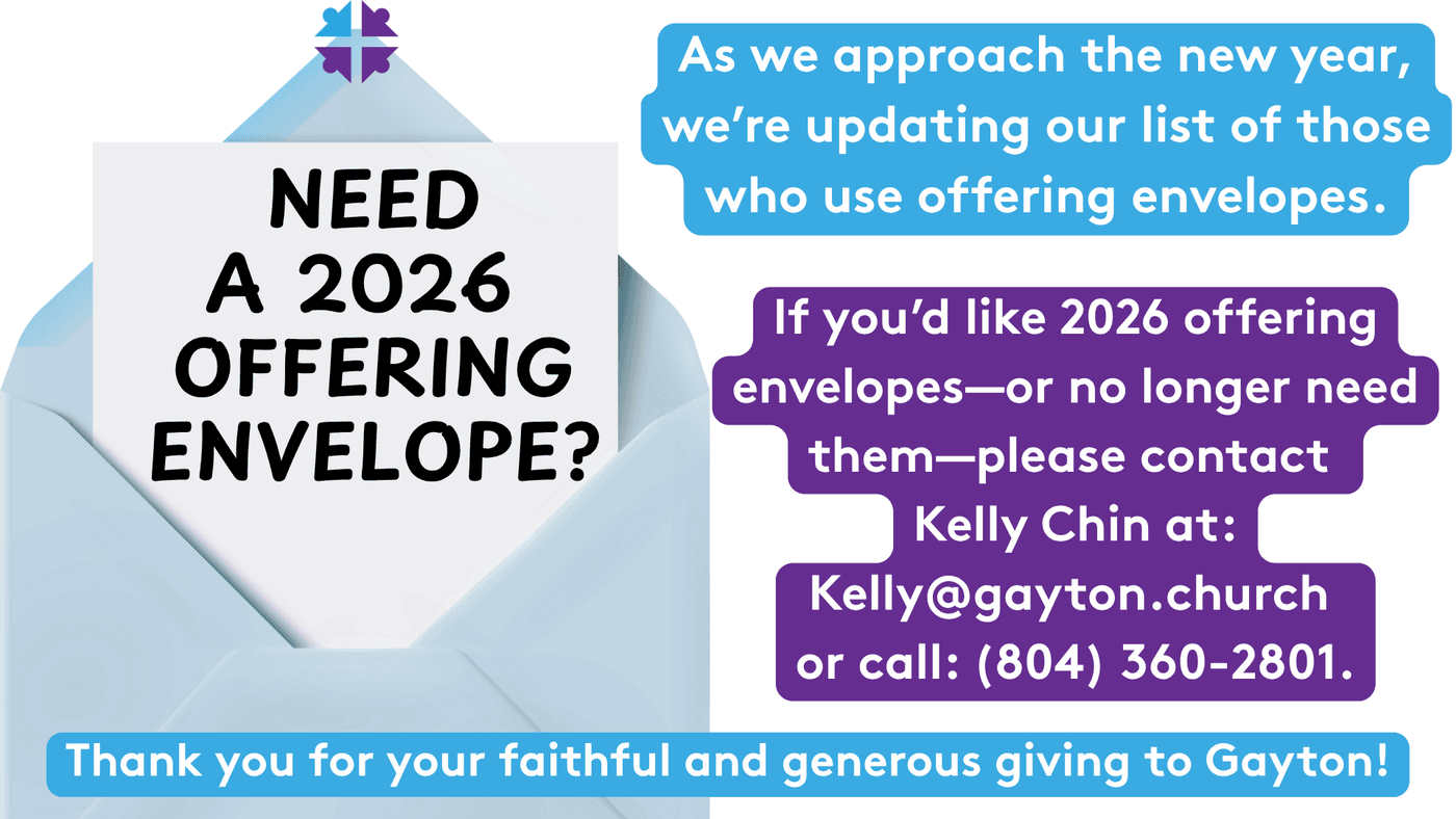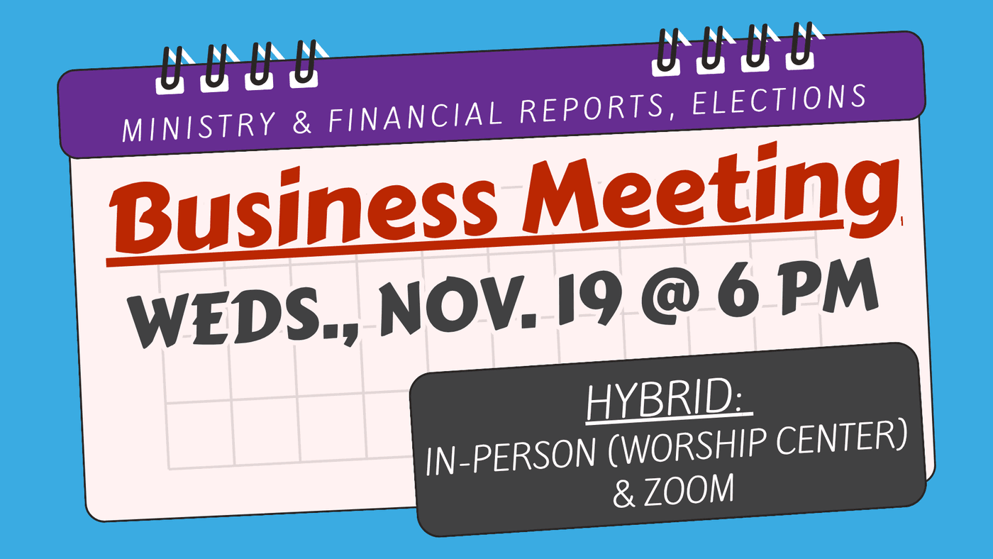 The next Gayton business meeting will be a hybrid meeting and held on Wednesday, Nov. 19 at 6 PM. Members may attend and vote in person in the Worship Center or via Zoom. A Zoom link will be sent out previous to the 19th and all votes will be counted during the meeting. We will have ministry and finance reports, as well as elections for deacons and other council members.