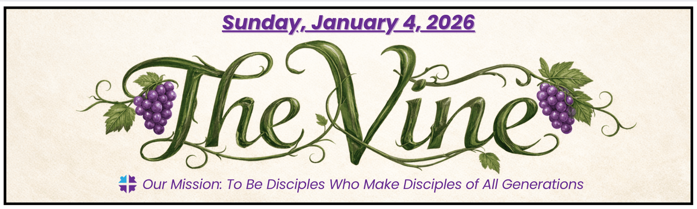As we begin a new year, we’re excited to introduce The Vine, our new weekly newsletter replacing The Glance. Rooted in Jesus’ words, “I am the vine; you are the branches… those who abide in me bear much fruit” (John 15:5), The Vine is designed to help our church stay connected, grow deeper, and bear fruit together. This new format is more reader-friendly and puts everything in one place—featuring quick links to registrations, emails, and even songs for Sunday worship—making it easier than ever to stay informed and engaged. You’ll also find dedicated pages highlighting Gayton’s ministries, including Kids (Little Branches), Youth (Growing Branches), Young Adult and Adult Discipleship (Fruitful Branches), so everyone can find where they are growing and serving.